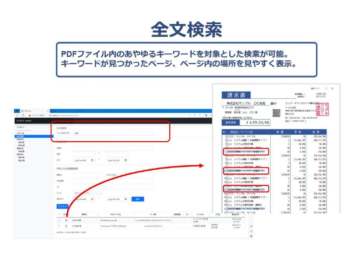 企業の情報資産をPDF化し安全に保管・活用しやすい機能(高度な検索、管理や分類等)を提供するソリューションです。